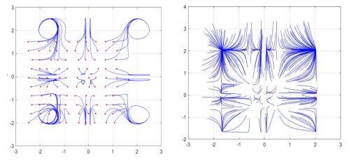 貴大新聞網訊(數學與統計學院)近日,國家天元數學西南中心貴州基地/貴州省數據驅動建模學習與優化創新人才團隊、貴州大學數學與統計學院王錦榮教授團隊教師歐世勤以第一作者在計算機領域頂級期刊 IEEE Transactions on Fuzzy Systems 等期刊發表神經網絡系列學術論文,為相關領域的研究提供了新的理論和方法。針對模糊神經網絡,給出了狀態依賴切換機制構建了狀態依賴切換模糊神經網絡模型,探討了系統參數在狀態依賴切換下多穩定性和固定時間多穩定性問題,旨在為神經網絡在聯想記憶中的應用提供理論依據。研究結果表明狀態依賴切換機制會導致系統的平衡態增加,使之在聯想記憶應用中比傳統未切換的神經網絡模型有更大的儲存容量。進一步考慮系統參數具有概周期性,得到了具有高斯激活函數的元切換模糊神經網絡具有個穩定的概周期解,下圖分別給出了具有高斯激活函數的2元切換神經網絡在時變概周期參數與非時變參數下的相圖。此外,在系統實現多穩態的基礎上,提出了多控制器組合控制策略以實現多個平衡態的固定時間收斂,建立了固定時間多概周期性、多周期性和多穩定性的判定準則,相關結果已投稿且被(IEEE Transact